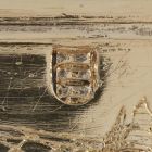 Az egyik poháron (IM ltsz.: 19.068) tájban, illetve faluszélen játszódó életképeket látunk: vadászatra induló előkelő lovasok, egyikük sólymot visz karján, előttük hajtó kutyákkal, arrébb fát vágó, rőzsét hordó, karót leverő és további emberalakok. A másik poháron (IM ltsz.: 19.070) egy vaddisznóvadászat jelenetsorát ábrázolta a mester. A táj hátterében kihúzott hálót látunk, míg az előtérben kivont karddal vágtató úr és hajtói a beterelt, csapdába szorított vaddisznókra támadnak. Az egyiket körbefogták a vérebek, a másik ezt látva menekülőre fogta, de lándzsás vadász állja útját.