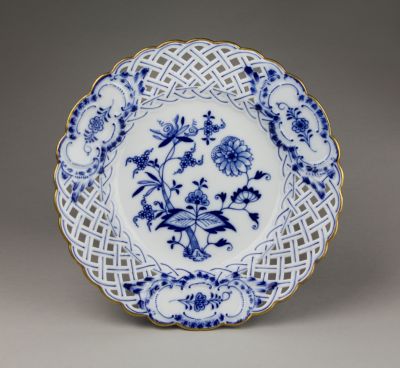 Technika: | aranyozott; áttört díszítés; máz alatt kobalttal festett; öntött elemekből összeállított; plasztikus díszítés |