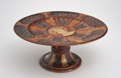 | Technika: | domborműves díszítés; lüszteres máz; színes mázakkal festett |