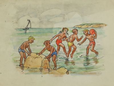 Tanulmány - fürdőző gyerekek-kőműves