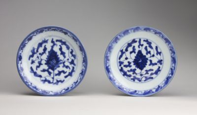 Jelzés: | az egyik tányér alján máz alatt kobaltkékkel festve hat írásjegyes pecsétírásos jelzet: Da Qing Jiaqing nianzhi (»Készült a Qing-dinasztia Jiaqing-korszakában«). A másik tányér hasonló kobalt jelzete jóval elnagyoltabb írásképű: három írásjegyes Qing Jiaqing (?) »Qing (dinasztia) Jiaqing« olvasattal. |