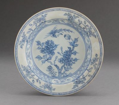 Tányér - Öblében peóniával és madárral (ismeretlen hajóroncs rakományából)