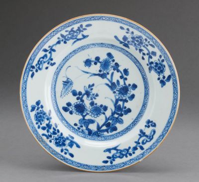 Tányér - Öblében virágtővel és kabócával (Erős Ágost szász választófejedelem és lengyel király gyűjteményéből, No. 531 jelzéssel)