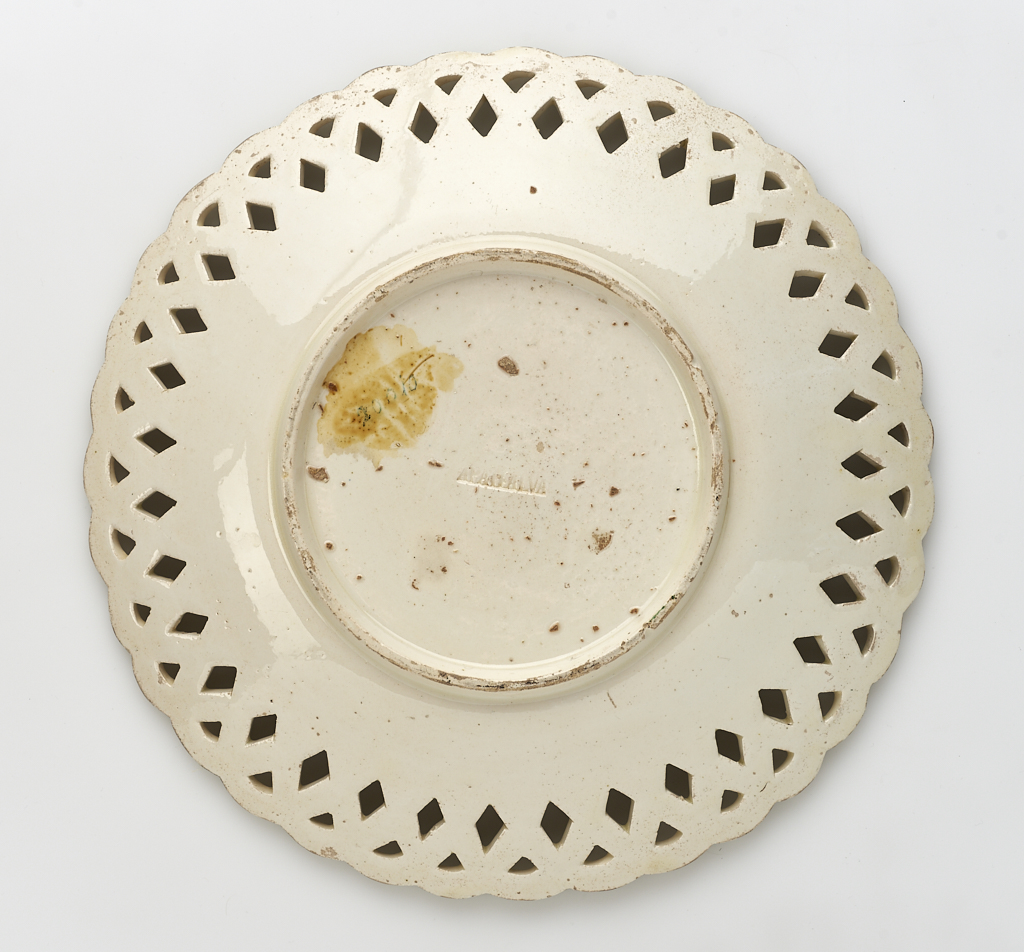 Technika: áttört; domborműves formára préselt; máz alatt kobalttal festett