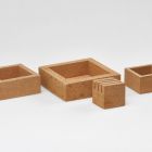 Parafa tároló készlet, egymásba illeszthető elemekből. 3 kocka alakú, felül nyitott dobozból és 1 kocka alakú tárgyból áll, amelyen felül három vékony bevésés van. Az OPTEAM tervezőcsoport PARASET készletének egyik darabja.