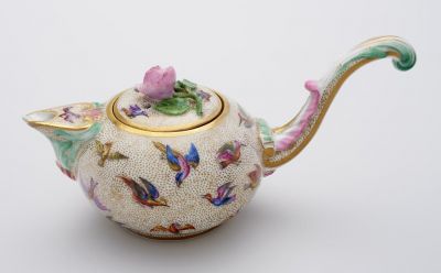 Technika: | aranyozott; máz felett színesen festett; negatív forma felhasználásával készült; öntött és mintázott elemekkel |