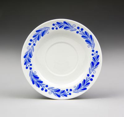 Teáscsésze-alj (készlet része) - A Krisztina-202 asztali készlet része, kék színű, magyaros dekorral