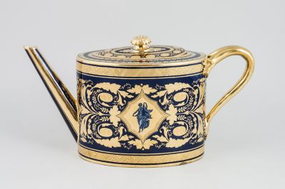 Technika: | öntött; részben polírozott reliefaranyozás; ún. Leithnerblau (sötét kobaltkék) máz |
