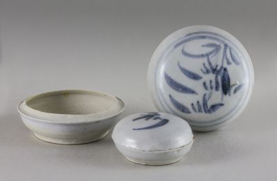 Tégely fedéllel - egymásba illeszthető, fedelükön növényi díszítéssel (a Tek Sing hajóroncs rakományából)