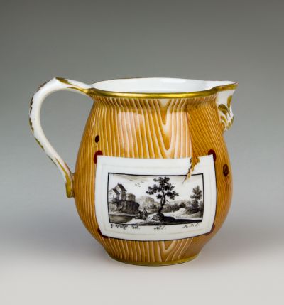 Tejszínes kanna - Trompe l'oeil metszetekkel és faerezetet imitáló, ún. faux bois festéssel
