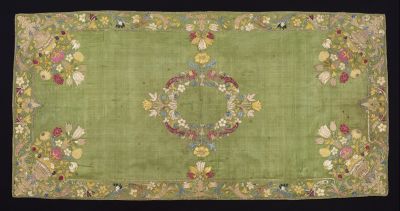 Anyag: | aranyszínű fémfonal; selyem; selyem alap |