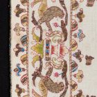 | Anyag: | aranyszínű fémfonal; ezüstszínű fémfonal; ezüstszínű lamella; selyemfonal; vászon |