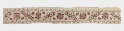 Technika: | laposöltés; mintásan letűzött fémfonalas hímzés; száröltés |