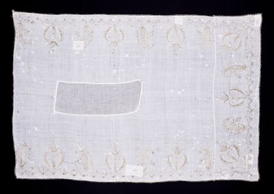 Anyag: | aranyszínű fémfonal; pamutvászon (feltehetően) |