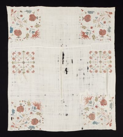 | Anyag: | ezüstszínű fémfonal; patyolatvászon; selyemfonal |