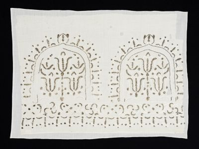 Anyag: | ezüstszínű fémfonal; pamutfonal (feltehetően); vászon |