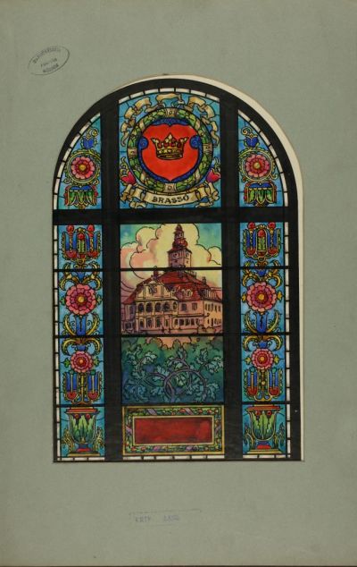 Terv - a lillafüredi Palota Szálló Hunyadi János éttermének színes ablaka