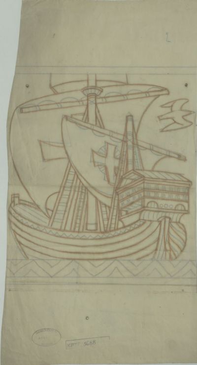Terv - Cranbrook School, a könyvtár kandallóját díszítő mészkő -relief részlete: Noé bárkája