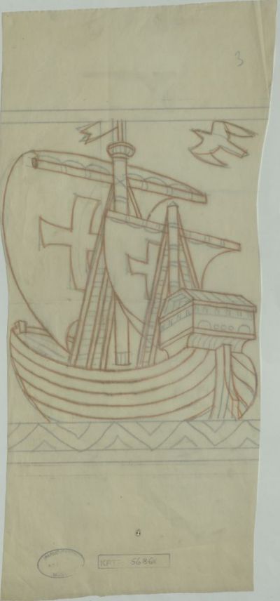 Terv - Cranbrook School, a könyvtár kandallóját díszítő mészkő -relief részlete: Noé bárkája