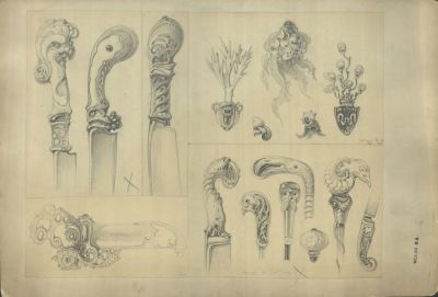 Jelzés: | Öt rajz egy alapra ragsztva, kettő jelzett a rajzok alján: Krieger B. inv., egy datált 1899. |