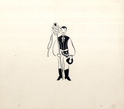 Terv - ”Eljöttem egy rövid szóra” kezdetű újévi népi köszöntő illusztrációja