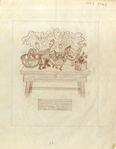Terv - illusztráció Gazdag Erzsi: Száll a sárkány c .könyvből a „ Konyhai bál ” c. vershez p. 27.