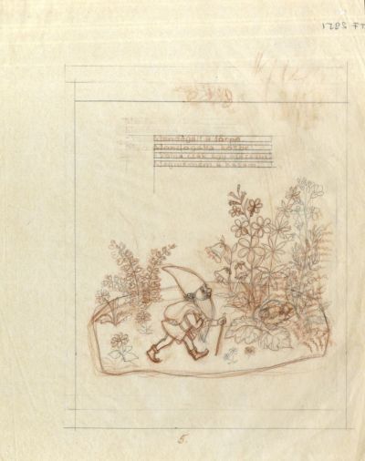 Terv - illusztráció Gazdag Erzsi: Száll a sárkány c. könyvéből a „ Törpe bánata ” c. vershez p. 5.