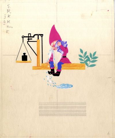 Terv - illusztráció Gazdag Erzsi: Száll a sárkány c. könyvéből a ”Törpe bánata ” c. vershez