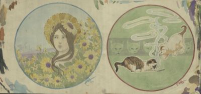 Terv - köralapban lány virágokkal körülvéve és cicák