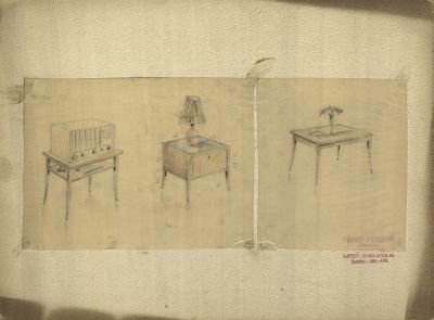 Tervek - a ./ rádióasztalka, éjjeli szekrény; b ./ asztalka