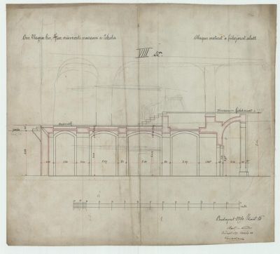 Tervrajz - az Iparművészeti Múzeum és Iskola alagsorának metszete a főbejárat alatt