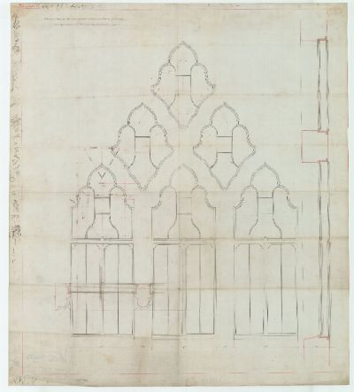 Felirat balra fenn: Országos. magyar kir. Iparmüvészeti múzeum és Iskola építkezése / a föryzalyton lévő hármas nagyablak részletrajzaaláírás nélkülévszám nélkülM=1:10
