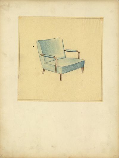 Tervrajz - karosszék-kék kárpittal, részben kárpitozott karfával