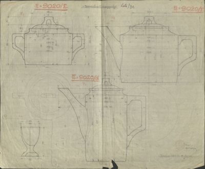 Tervrajz - teáskészlet metszet rajzai méretekkel