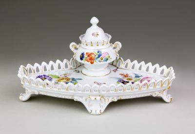 Technika: | áttört díszítés; máz felett aranyozott; máz felett színesen festett; negatív forma felhasználásával készült |
