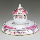 | Technika: | kosárfonatos; máz felett aranyozott; máz felett színesen festett; negatív forma felhasználásával készült; öntött és mintázott elemekkel |