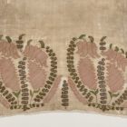 | Anyag: | arany színű fémfonal; csalánvászon; színes selyemfonal |