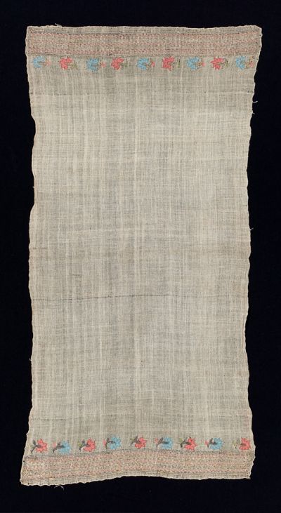 Anyag: | arany színű fémfonal; pamut; selyemfonal; vászon |