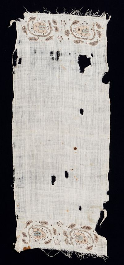 Anyag: | arany színű lamella; lenvászon; selyemfonal |