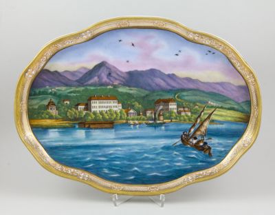 Tálca (készlet része) - A balatonfüredi kikötő látképével (az ún. balatonfüredi kávéskészlet része)