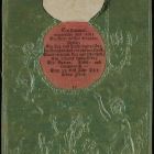 8 darab lap, kartonon, atlaszselyem bevonattal, betéttel. Felhajtható részek alatt látható többnyire a nyomtatott szöveg. Méretek különfélék, 9,5 x 6,7 cm-től 12,5 x 8,8 cm-ig terjedők.