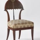 Támlásszékek: Négy, lefelé keskenyedő, lent kifelé ívelő hasábos láb. A hátsó lábak a háttámla függőleges keretében folytatódnak. Díszítése motívumaiban és technikájában egyaránt a kanapéhoz hasonló.