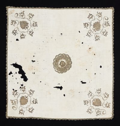 Anyag: | aranyozott ezüstfonal; ezüstfonal; vászon |