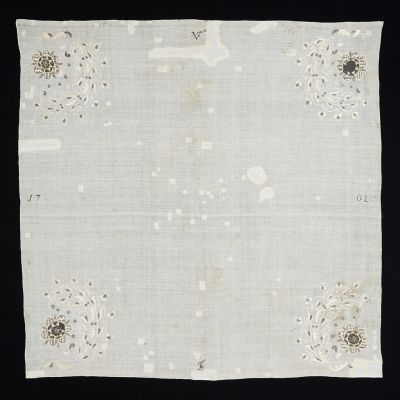 Anyag: | ezüstskófium; pamut- és lenvászon; selyemfonal |