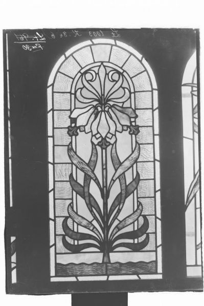 Üvegnegatív - üvegfestmény, ablak, stilizált liliomok, Róth Miksa tulajdonában