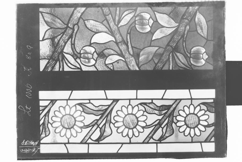 Üvegnegatív - üvegfestmény, stilizált virágok két csíkban, Róth Miksa tulajdonában