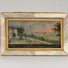 Jelzetlen, de közeli analógiák alapján feltételezhető, hogy a miniatűr Balthasar Wigand (1770-1846) bécsi miniatűrfestő készítette. Hasonló, gyöngyházborítású, akvarell, vagy gouache bécsi látképpel díszített dobozokat, kazettákat és ládikákat közöl: Bürgersinn und Aufbegeheren: Biedermeier und Vormärz in Wien 1815-1848. Historisches Museum der Stadt Wien, 1987, Nr. 6/6/1-13. Azonos mestertől való közeli analógia egy nécessaire, egykor Kilényi Hugó gyűjteményében ld.: Ernst Múzeum Aukciói II., Budapest 1917, Nr. 1021., kép: LXXXVII. tábla.