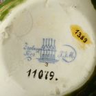 | Jelzés: | talpán máz alatti kékkel öttornyos gyári jegy T. J. M. betűkkel (Zsolnay Vilmos gyermekei, Teréz, Júlia és Miklós neveinek kezdőbetűi) |