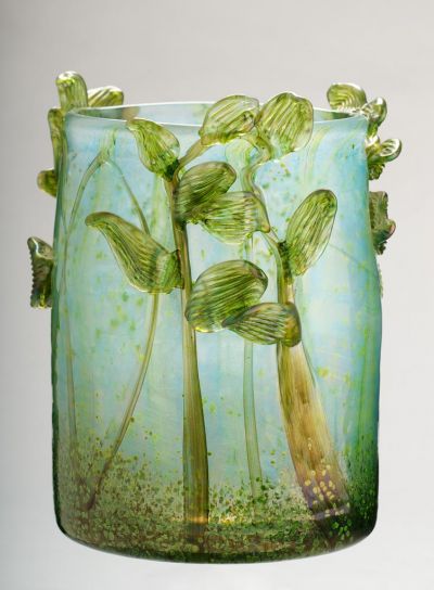 Technika: | formába fúvott; hutakész üveg; irizáló; melegen formált; színezett |