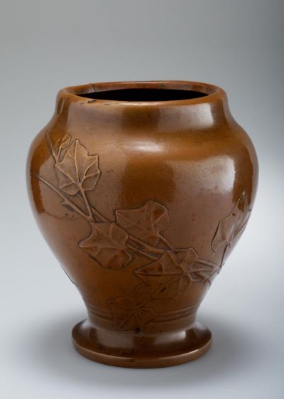 Válla felé szélesedő, körte alakú test. Talp- és szájpereménél aszimmetrikusan körbefutó, naturalisztikus, borostyánleveles inda.